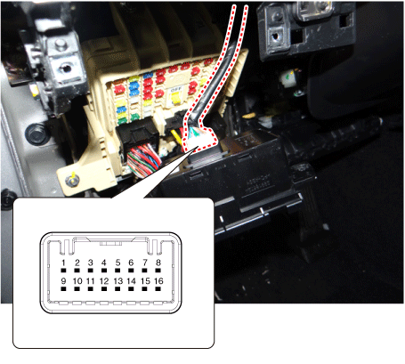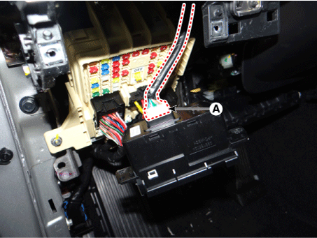 Отсоедините отрицательную (-) клемму аккумуляторной батареи. |