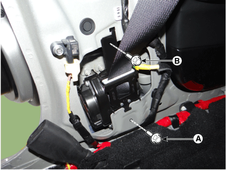 Ослабьте болты преднатяжителя ремня безопасности (А, В).