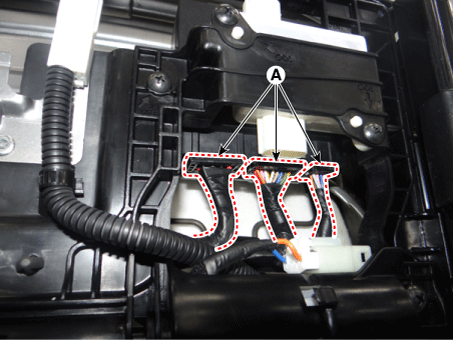 Отсоедините разъемы блока вентиляции сиденья (А).