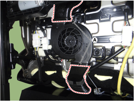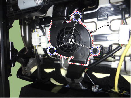 Снимите блок вентиляции сиденья (А), предварительно ослабив крепежные винты.
