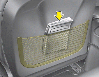 Карман в спинке сиденья предусмотрен на спинке переднего пассажира и водителя.