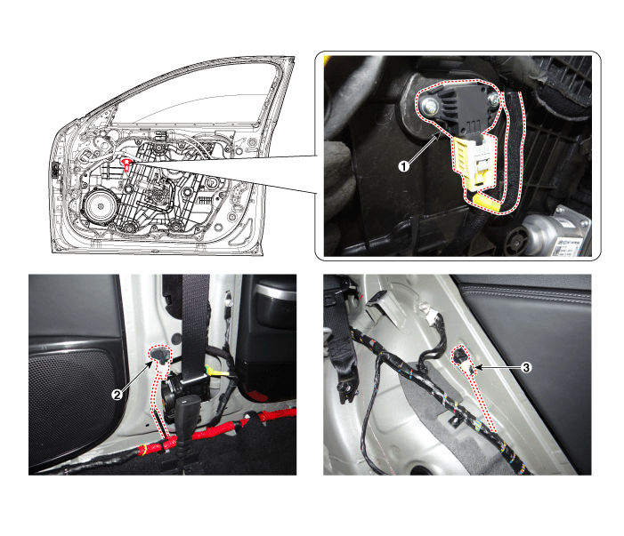 Снять обивку дверного проема. (См. Кузов (внутри и снаружи) — «Облицовка дверных потертостей») |