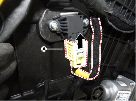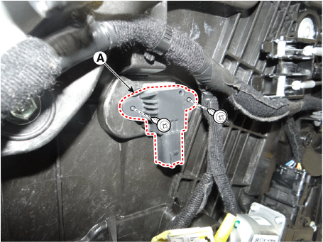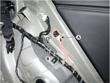 После отсоединения разъема датчика бокового удара (А) и ослабления болт (В), снимите датчик.