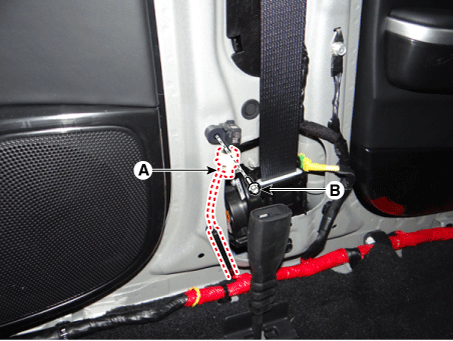 Снимите обивку центральной стойки. (См. Кузов (внутри и снаружи) — «Отделка центральной стойки») |