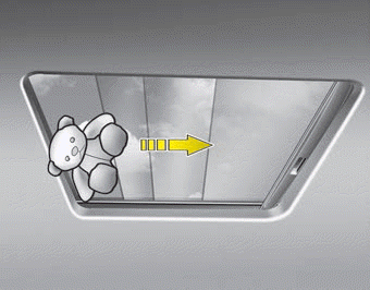 Функция автореверса может не работать, если между раздвижное стекло и створка люка. Вы должны всегда проверять, чтобы все пассажиры и объекты находятся вдали от люка до его закрытия.
