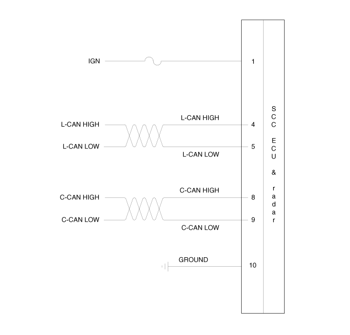 Блок интеллектуального круиз-контроля установлен в передней правой части автомобиля. шасси. Радарный датчик встроен в переднюю часть устройства. Этот датчик Обнаруживает транспортные средства и объекты перед автомобилем. Радарный датчик может обнаруживать до 64 объектов впереди автомобиля. Сигнализация срабатывает, когда автомобиль отклоняется от опорных точек горизонтального и вертикального выравнивания во время работы. Этот датчик связывается с приборной панелью, предупреждающим зуммером, интеллектуальным переключателем круиз-контроля, Электронная программа стабилизации (ESP), ECM и TCM по шине CAN. Датчик контролирует скорость автомобиля через CAN-связь между системой электронной стабилизации Программа (ESP) системы и ECM и TCM.