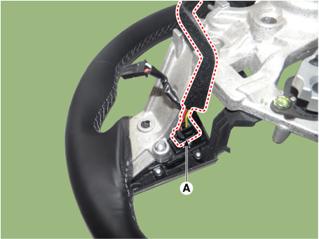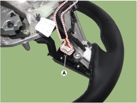 Отсоедините разъем дистанционного управления на рулевом колесе (А). [левый]