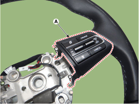 Снимите пульт дистанционного управления с рулевого колеса (А), предварительно ослабив крепление. винты. [левый]