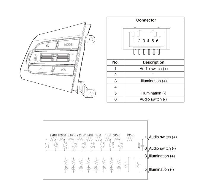 Проверьте сопротивление между клеммами в каждом положении переключателя (RH).