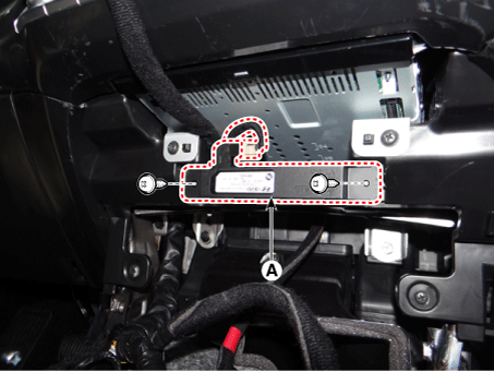Снимите встроенный блок управления кузовом (А), предварительно ослабив крепления. гайки и болт.