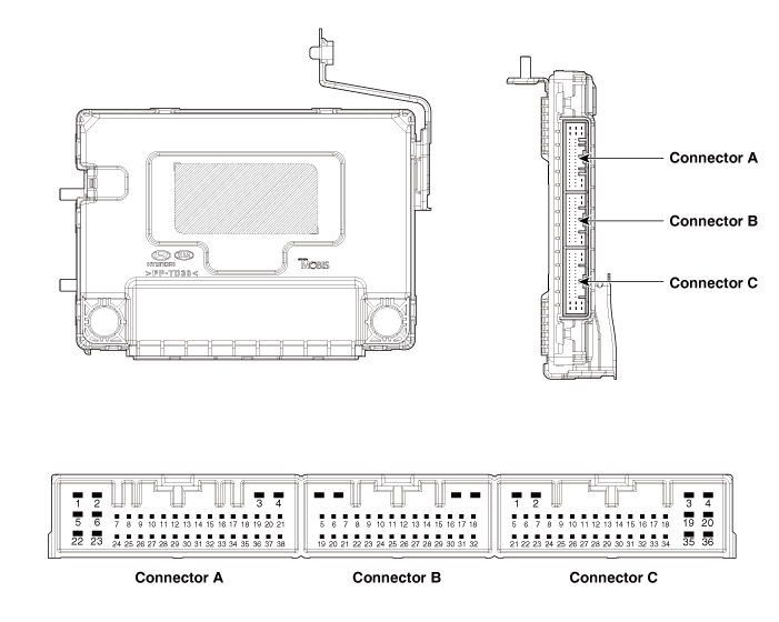 Подсоедините разъемы встроенного блока управления кузовом. |