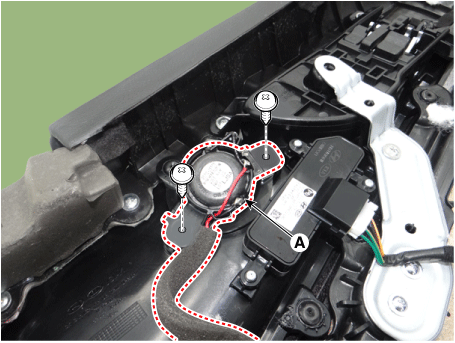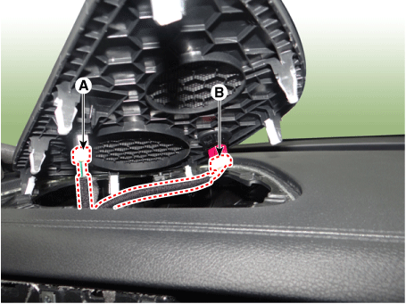 Отсоедините разъем переднего высокочастотного динамика (А).