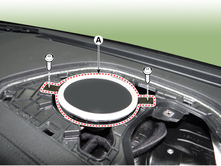 Снимите передний высокочастотный динамик (A) после ослабления крепежных винтов.