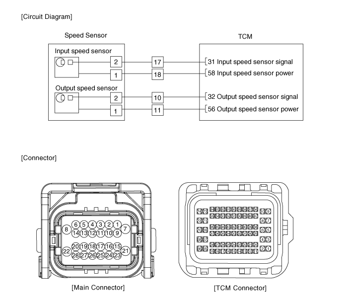Датчик скорости измеряет скорость вращения входа и выхода валов внутри трансмиссии и передает показания в TCM. |