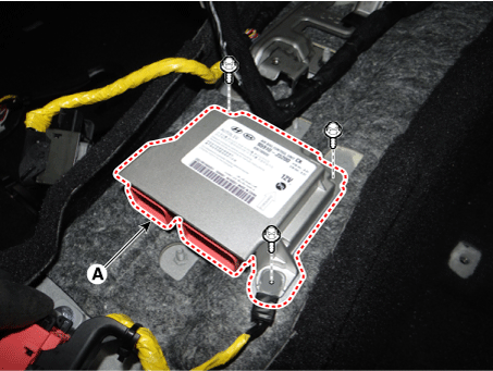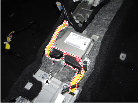 Отсоедините разъем модуля управления дополнительной системой пассивной безопасности (SRSCM). (А).