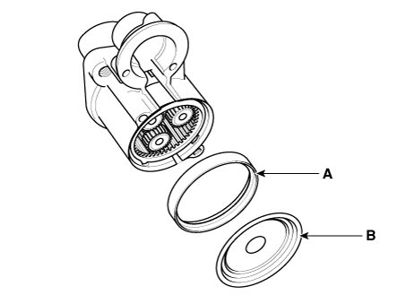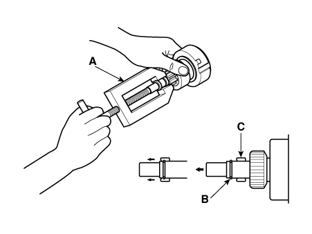После снятия стопорного кольца (A) с помощью плоскогубцев (B).