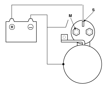 Отсоедините аккумулятор от клеммы М. Если шестерня не втягивается, удерживающая катушка работает правильно.