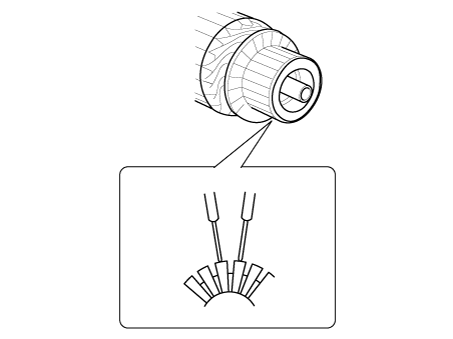 Проверьте поверхность коллектора (А). Если поверхность загрязнена или обожжена, наждачной бумагой или на токарном станке в соответствии со следующими спецификациями, или восстановить наждачной бумагой #500 или #600 (B).