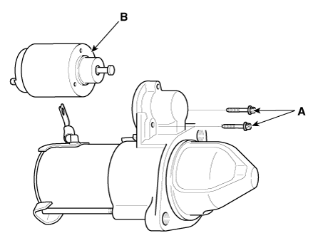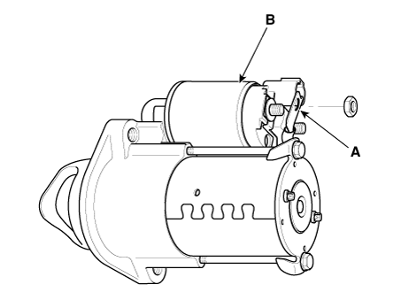 Отсоедините М-клемму (А) на блоке магнитного переключателя (В).