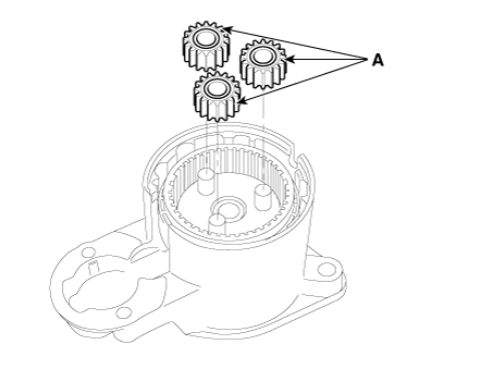 Отсоедините стопор (А), обгонную муфту (В), внутреннюю шестерню (С), планетарный вал (D) и/или уплотнительный лист (E).