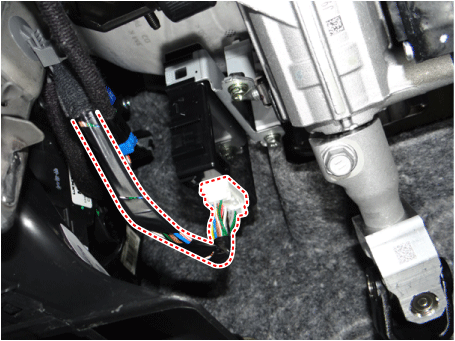 Отсоедините разъем модуля рулевой колонки. [левый руль]