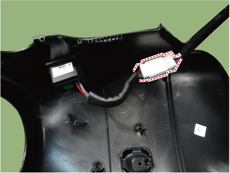 Отсоедините разъем переключателя модуля рулевого управления и зажим.
