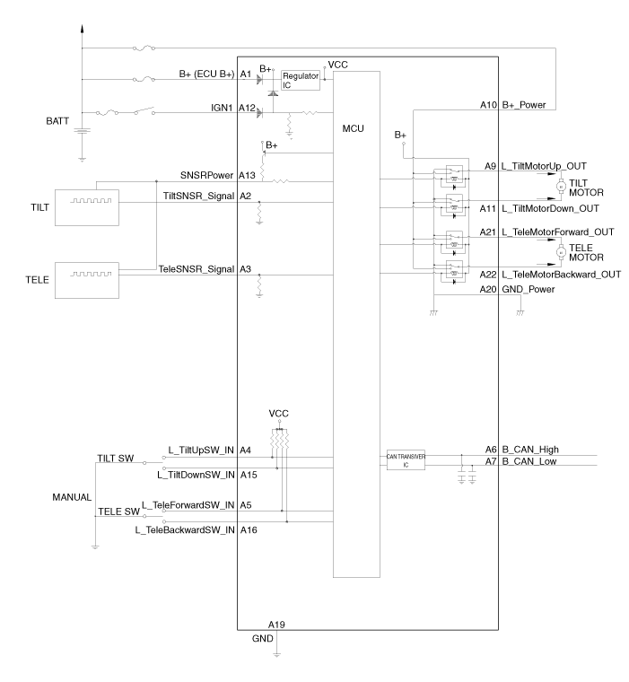 Автоматическая регулировка наклона и положения телескопа: наклон и телескоп положение может регулироваться автоматически на основе данных ввода/вывода ключа (CAN данные БКМ). |