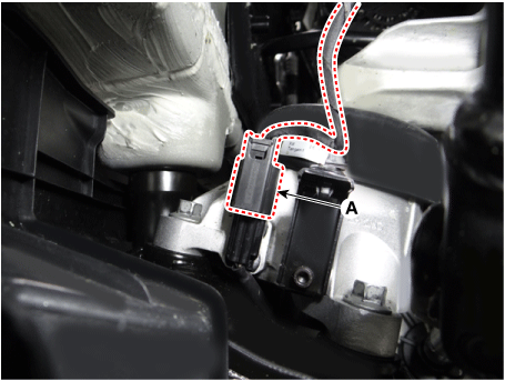 Отсоедините разъем полуактивной опоры двигателя (А). [Р 2.2] [левый]