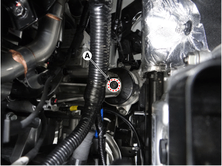 Снимите боковую крышку машинного отделения. D 2.2 R VGT (см. Механическая система двигателя — «Под крышкой машинного отделения») G 2.0 T-GDI THETA II (см. Механическая система двигателя — «Моторное отделение»). Под прикрытием") G 3.3 T-GDI LAMBDA II (см. Механическая система двигателя — «Моторное отделение»). Под прикрытием") |