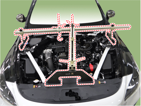 Соберите опору двигателя в машинном отделении. (См. Специальные сервисные инструменты — «Сборочный чертеж крепления опоры двигателя»)