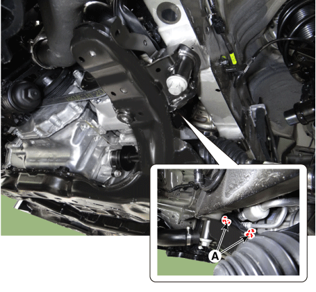 Отсоедините зажим проводки R-MDPS (A) от подрамника.