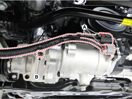 Отсоедините разъем R-MDPS (A) и зажим (B).