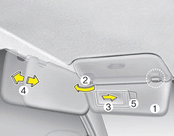 Если вы используете лампу косметического зеркала, выключите ее, прежде чем возвращать солнцезащитный козырек в исходное положение, иначе это может привести к разрядке аккумулятора. и возможное повреждение солнцезащитного козырька.