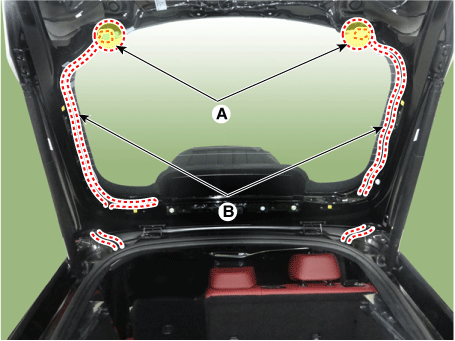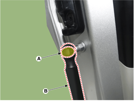 С помощью отвертки разъедините оба конца подъемника задней двери (B). после снятия зажимов гнезда (A).