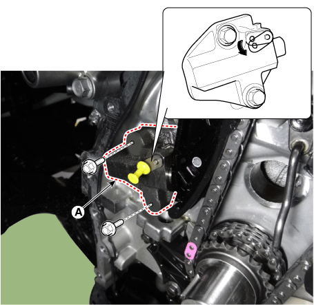 Снимите рычаг натяжителя цепи ГРМ (А).