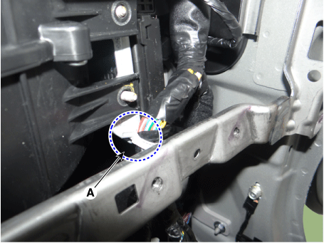 Отсоедините разъем электродвигателя вентилятора (А) и закрепите зажим (В).