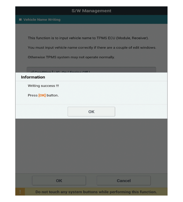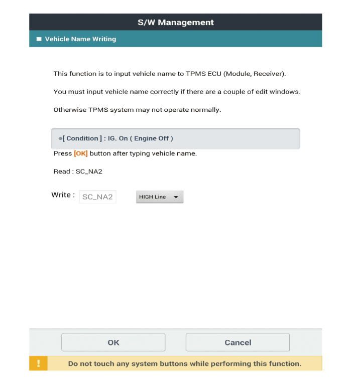 Выберите «модель автомобиля» и «TPMS» на экране выбора автомобиля KDS, затем выберите ОК. |