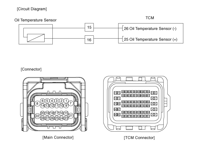 Когда TCM подает питание на датчик, выходное значение датчика изменяется. в зависимости от температуры ATF. |
