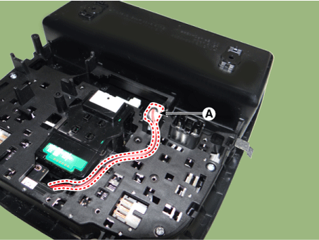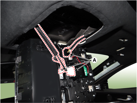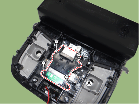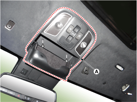 Снимите крышку лампы потолочной консоли (A) после ослабления крепления. винты.