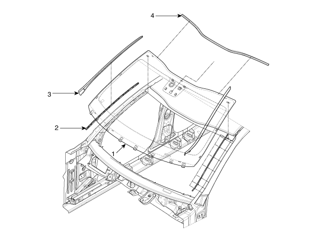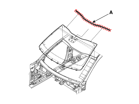 Установите боковой молдинг ветрового стекла в сборе (А).