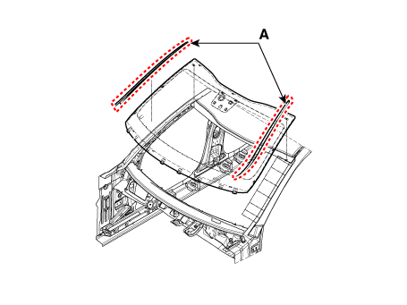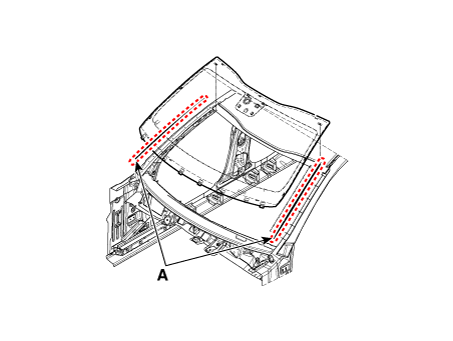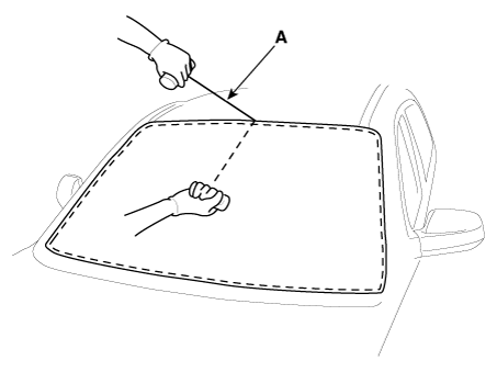 Снимите боковой молдинг ветрового стекла в сборе (А) с помощью съемника.