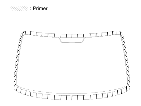 С помощью губки нанесите тонкий слой грунтовки для кузова на исходный клей. вокруг фланца проема ветрового стекла. Дайте грунтовке для тела высохнуть не менее 10 минут.