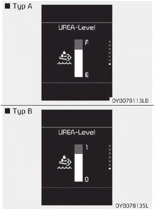 ❈ Требуется некоторое время, прежде чем Дисплеи в комбинации приборов заливка раствора мочевины Обновить.