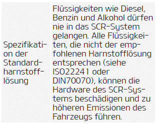 ❈ Используйте только раствор мочевины согласно ISO 22241. Любые неутвержденные раствор мочевины конечно производительность автомобиля и вызывает различные неисправности.