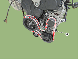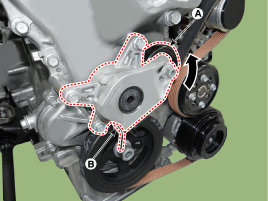Чтобы ослабить, поверните натяжитель приводного ремня (А) по часовой стрелке.