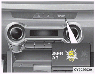 Контрольная лампа «Фронтальная подушка безопасности переднего пассажира» ON” также загорается, когда Передняя подушка безопасности пассажира ВКЛ/ OFF” находится в положении ON и выключается примерно через 60 секунд.