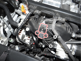Снимите датчик (В) с впускного коллектора, ослабив крепежные винты.