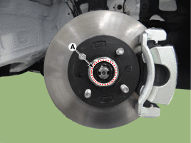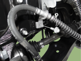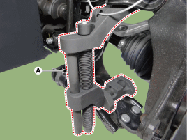 Медленно затяните основной винт корпуса (A) и нижний Снимите опорный рычаг с переднего поворотного кулака.