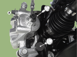 Отверните болты крепления суппорта, затем суппорт (А) Подвешивание на проволоке.
