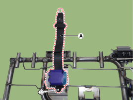 Ослабьте крепежный винт и снимите натяжитель центрального заднего ремня безопасности (А).